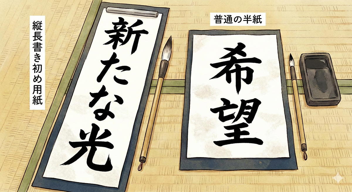 あたなたが思う書き初めのイメージは「縦長の半紙」「普通の半紙」どちらでしょう?